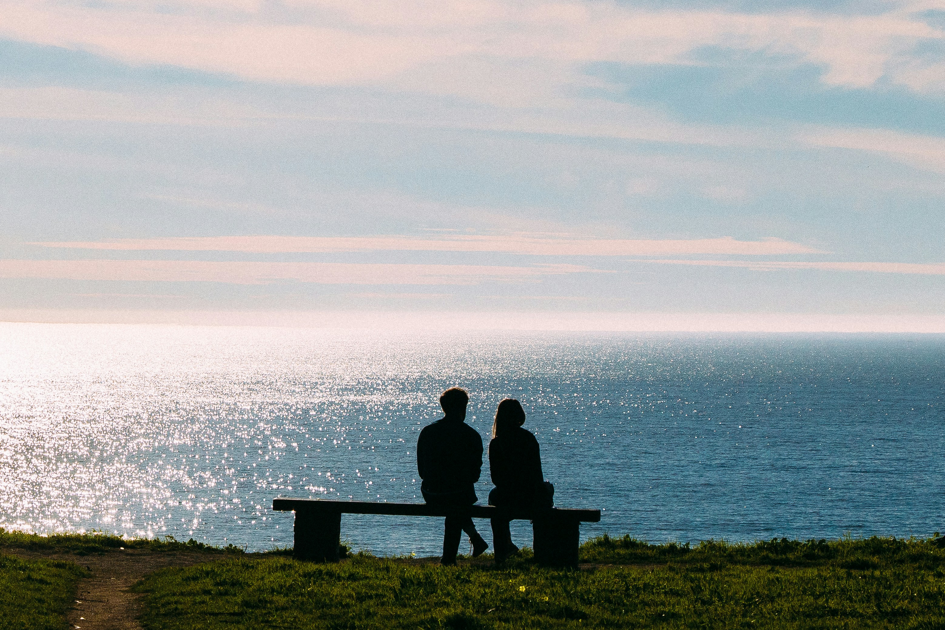 Silhouette Of Man And Woman Sitting On Bench Facing Sea Photo Free Human Image On Unsplash
